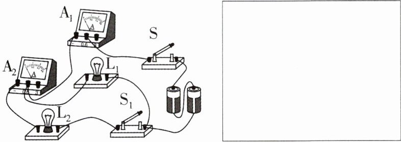 4[2024内蒙古呼和浩特期中,中]根据实物图在方框中画出对应的电路图。