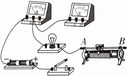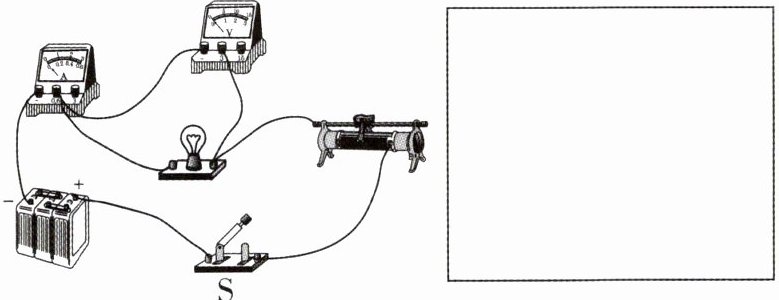 1[中]请把电路补充完整。已知电源电压为3V。要求:电压表测量灯泡两端电压,变阻器滑片向右滑时灯泡变亮。