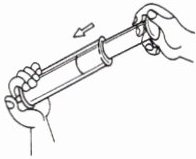 6取两只大小相同的医用注射器,取下针头后将活塞向外拉,分别吸入等体积的空气和水,用手指顶住针筒末端的小孔,将活塞慢慢推入。