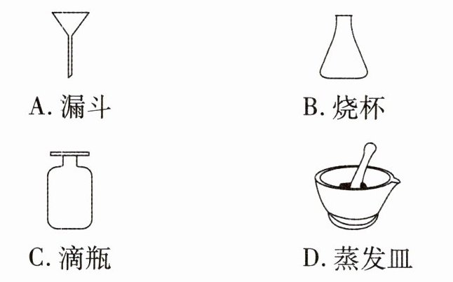1.A 【解析】A 仪器为漏斗,B 仪器为锥形瓶, C 仪器为细口瓶,D 仪器为研钵。故选 A。