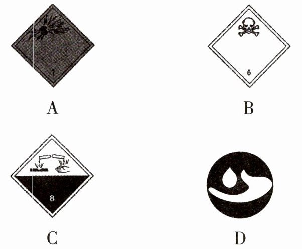 2.D 【解析】A 图示是爆炸性物质标志,B 图示是毒性物质标志,C 图示是腐蚀性物质标志, 均属于常见危险化学品标志;D 图示为国家节水标志,不属于常见危险化学品标志。故选 D。