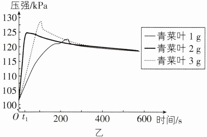 管通过胶皮管与压强传感器连接(如图甲所示),取1g青菜叶碎末放入具支试管中。