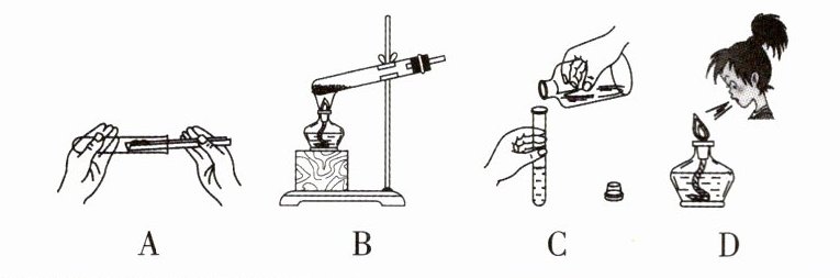 D 【解析】取用固体粉末时,应用药匙或纸槽将固体粉末送至试管底部,防止固体粉末粘在试管壁上,A正确;加热固体时,试管口应略向下倾斜,向上倾斜可能会使冷凝水倒流,导致试管炸裂,B正确;倾倒液体时,试剂瓶瓶口没有紧靠试管口,可能导致液体洒落,C正确;用嘴吹灭酒精灯容易引起火灾,而不是爆炸,D不正确。