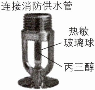 C 【解析】A 热敏玻璃球能迅速将外界的热量传递给丙三醇,丙三醇吸热膨胀,从而使热敏玻璃球内压强增大,将热敏玻璃球胀破,A说法正确B 消防供水管内必须一直保持一定的水压,以保证在需要时能够及时喷水灭火,B说法正确C 喷水灭火的原理是水蒸发吸热,使温度降低到可燃物的着火点以下,着火点是物质的固有属性,一般不能改变,C说法错误D 日常生活中应避免热源靠近自动感温喷淋头,防止触发喷水,D说法正确