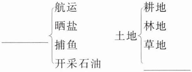 $\begin{cases}航运\\晒盐\\捕鱼\\开采石油\end{cases} $____