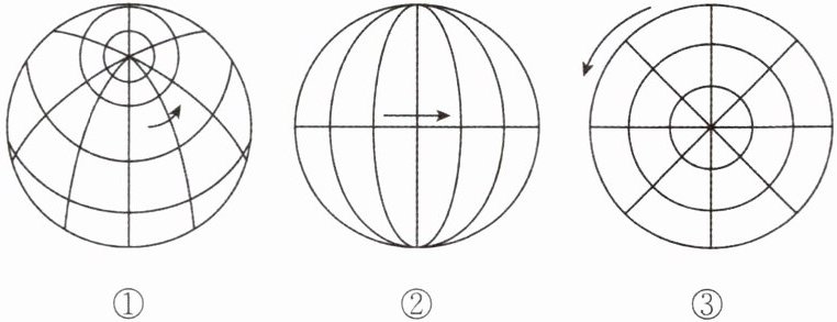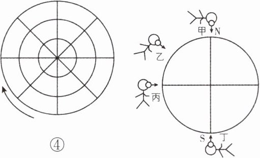 [中]下图是极点上空地球俯视图,图中外圈为赤道,中心为极点,箭头表示地球自转方向。读图,回答 1~3 题。