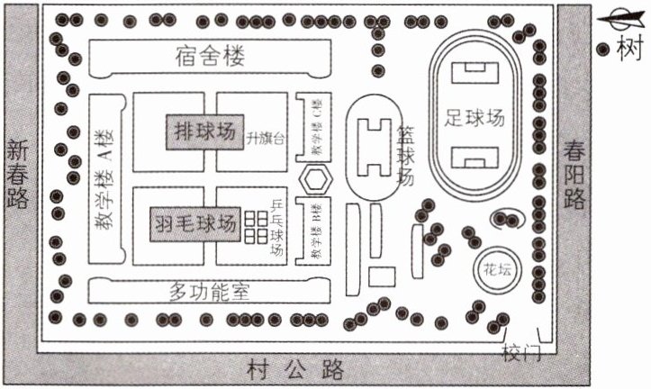 8 [2025 山东临沂二模]下图为同学们绘制的一幅校园整体规划图,与图幅相等的校园所在乡镇地图相比,校园规划图( )