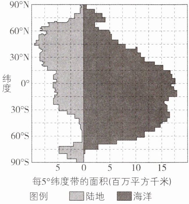 [2024四川泸州期中]读世界海陆分布随纬度的变化示意图,完成1~2题。