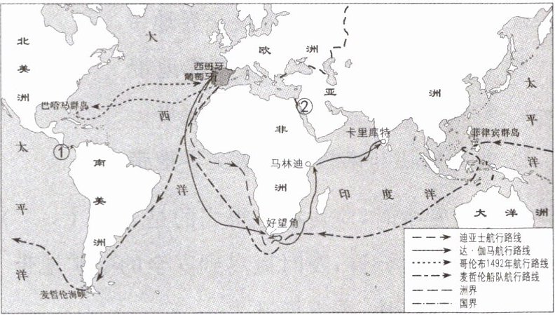 1519年9月,麦哲伦率领船队从西班牙出发开始人类首次环球航行,1522年9月船队返回西班牙。读图完成3~4题。