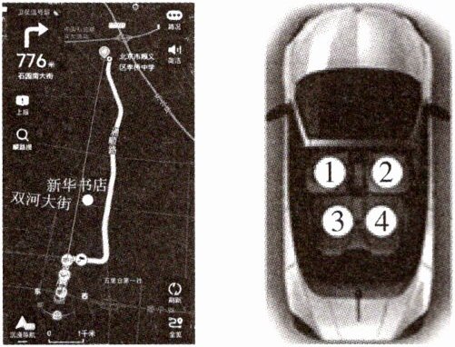 [2025山东菏泽期中]暑假,某校学生上午10:00需要到李桥中学参加比赛。下图为北斗卫星导航地图应用时的手机截屏和汽车座位示意图。读图,完成3~4题。