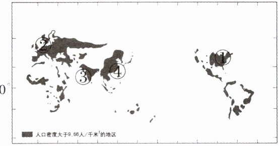 (2)图中,深色区域为世界人口____(填“稠密”或“稀疏”)区。