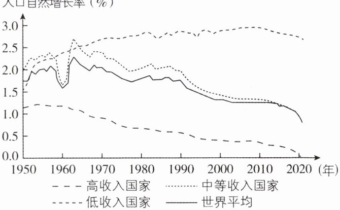 [2025重庆期末]下图为1950~2023年不同收入国家的人口自然增长率变化曲线图。读图,完成3~4题。