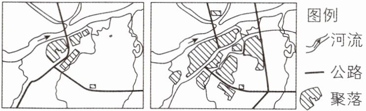 从图中聚落形成与发展的演变过程可以看出,影响其形态变化的主要因素是____条件。