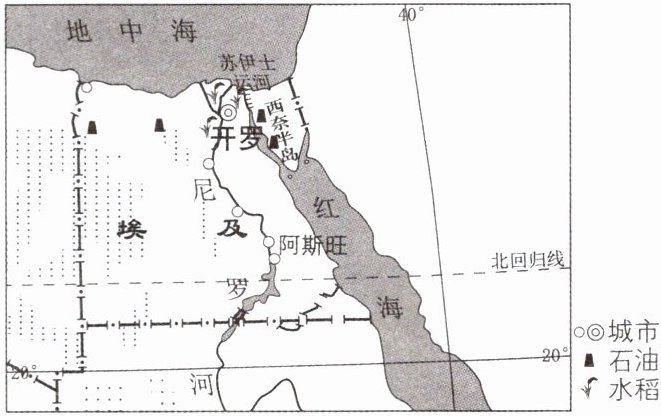 3[中]下图为埃及城市分布图。埃及城市分布形态呈( )