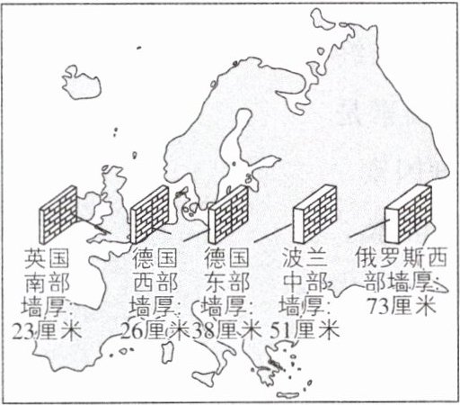 3 下图是从西欧到东欧传统民居的墙壁厚度变化示意图,图中反映的影响气候的主要因素是 ( )