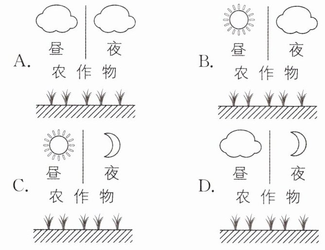 2 气温日较差大,光照强,有利于农作物养分积累。云层会直接影响一天的光照强弱和气温高低,多云的夜晚气温较高,下图中最有利于农作物品质提升的一天是( )