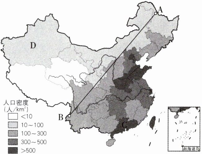 (1)我国人口地理分界线AB线为____线,我国人口分布的特点是____。