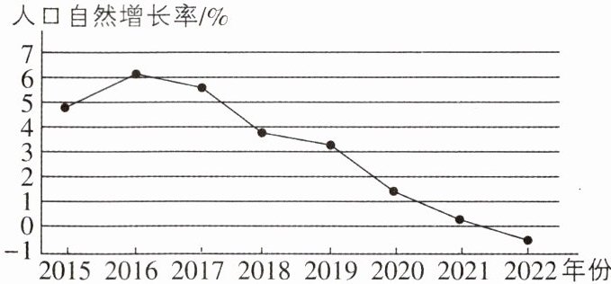 [2024山东东营中考]下图示意我国2015—2022年人口自然增长率变化情况。读图,完成6~7题。