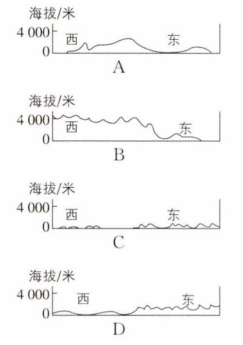 4 下列符合我国沿 $ 30^{\circ} \text{N} $ 地形剖面的是( )