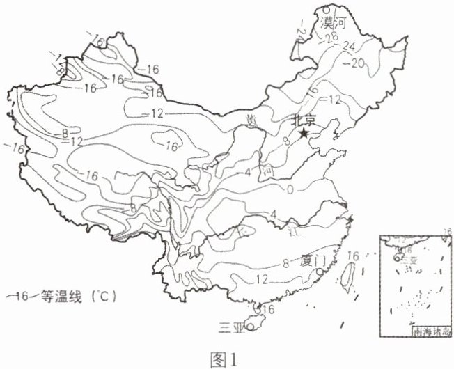 1图1反映了1月份中国南北气温差异情况及其原因是( )