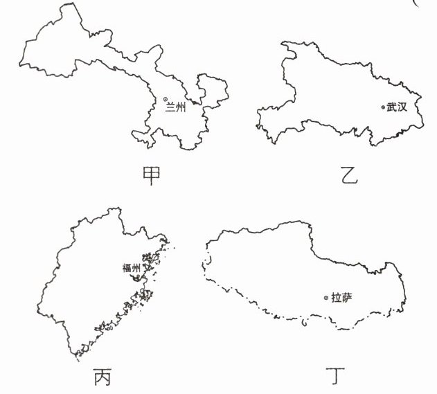 C 【解析】甲、乙、丙、丁四省份分别是甘肃省、湖北省、福建省、西藏自治区,简称分别为甘或陇、鄂、闽、藏,C正确。故选C。