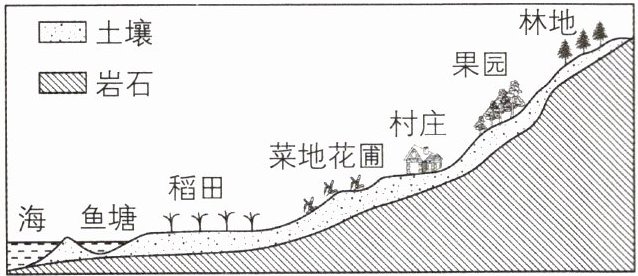 [2024 四川德阳质检,中]下图为我国东南沿海某大城市郊区土地利用示意图。读图,完成 4~5 题。