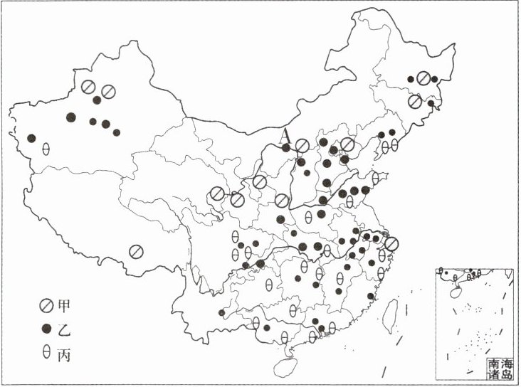 [2025 河北石家庄期中]中华人民共和国成立以来,中国纺织工业取得了很大的发展,已经形成包括棉、毛、丝、麻纺织和化纤等行业在内的完整体系,下图示意中国纺织工业分布。据此完成 4~5 题。