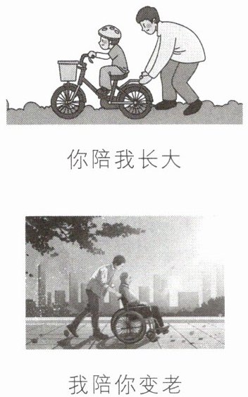 B 【解析】本题考查孝敬父母。漫画说明尽孝要落到实处,启示我们要弘扬尊老爱幼的传统美德,①③正确;孝敬父母要从现在做起,②错误;④不符合题意,排除。故选 B。