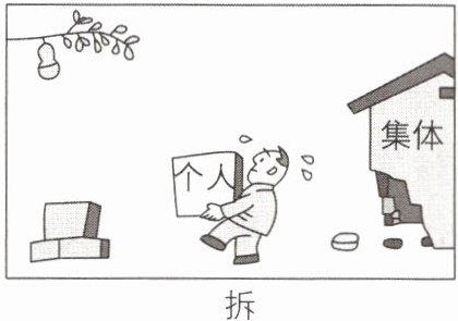 A 【解析】本题考查个人利益与集体利益的关系。漫画《拆》描绘的是为了个人利益而破坏集体利益的行为,讽刺了只顾个人不顾集体的极端个人主义,A符合题意;B、C、D不符合题意,排除。