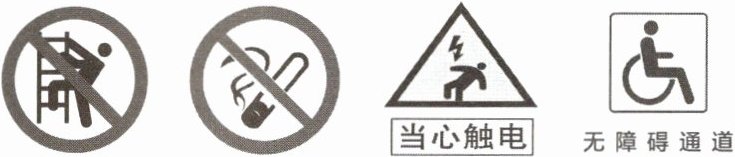 (1)选择①,禁止攀爬标识,张贴于教学楼顶层工作人员上、下专用的梯子上;选择②,禁止吸烟标识,张贴于学校大门口或办公室、卫生间内;选择③,当心触电标识,张贴于学校主要用电器及电线、线路开关处;选择④,无障碍通道,张贴于学校校园、教学楼等残疾人专用通道处。(4 分)
