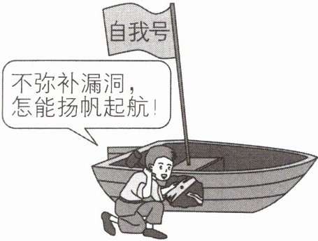C 【解析】本题考查正确对待自己的缺点。漫画表明船上有漏洞就走不远,启示我们做更好的自己,需要主动改正缺点,C 正确;A、D 说法正确,但不符合题意;我们看到自己的缺点,及时改正才能进步,B 错误。