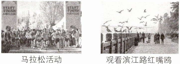 A 【解析】本题考查社会生活是丰富多彩的。题干中的"马拉松活动""观看滨江路红嘴鸥",这些都体现了社会生活丰富多彩,A符合题意;题干未涉及交往范围不断扩大、健全人格自尊自信、中学时代美好时光等,B、C、D不符合题意。