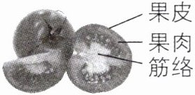 6[2024山东青岛期中]取一个成熟的番茄果实,用开水烫一烫,撕下表皮,可以看到里面的果肉肥厚多汁。仔细观察,里面还有丝丝筋络。下列分析正确的是 (