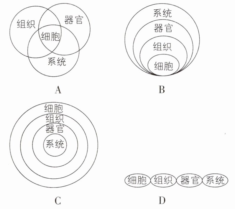 6[2024广东揭阳调研]将零散的知识通过线索贯穿形成概念框架,有利于对所学内容进行系统和整体地把握。下列概念框架图能准确反映人体各结构层次之间关系的是(