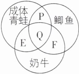 D. 青蛙、鲫鱼、奶牛体内都有脊柱,Q为三者的共同特征,可以表示体内有脊柱,D正确。