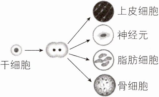 8 [2024山东青岛期末]近年来,随着干细胞技术迅猛发展,其强大的疗效也被越来越多人认可。如图是研究人员对干细胞进行培养的过程示意图,下列说法正确的是 (