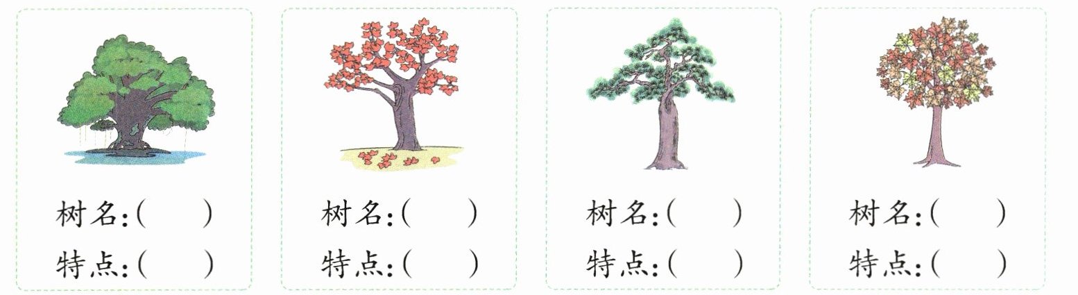 ⑤ 壮 ⑥ 树叶像手掌 ⑦ 秋天叶儿红 ⑧ 四季披绿装