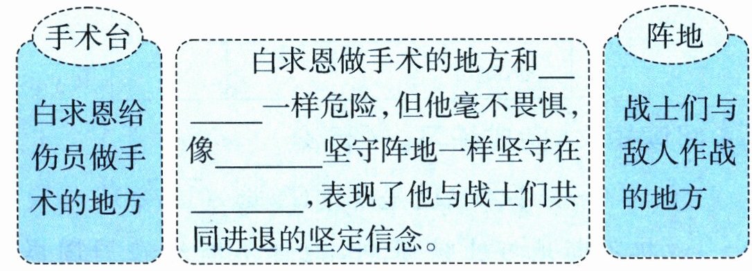 4. 语文要素 联系课文内容,理解“手术台就是阵地”的含义,完成填空。(3 分)