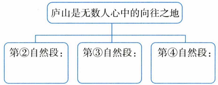 (3)× 3. 山上的云雾很多,好像给庐山戴了一顶白色的帽子。 4. B 5. 示例:九寨沟 九寨沟以其清澈多彩的水体和如画的自然风光著称,被誉为“水景之王”。