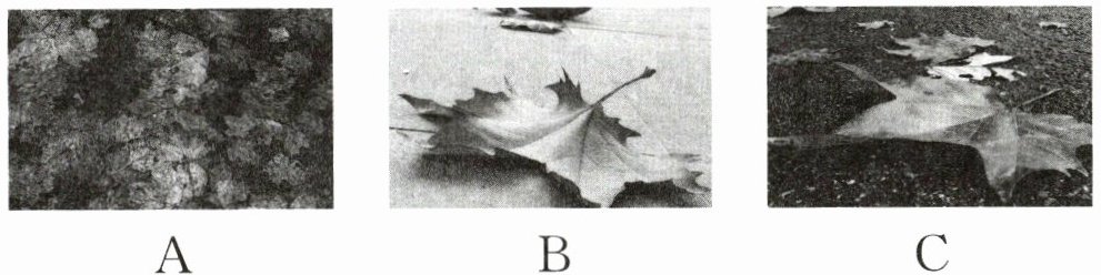 (1)“ ”写出了法国梧桐树落叶的形状,“ ”写出了法国梧桐树落叶 的颜色. “ ”和“ ”说明落叶与水泥道紧密地、平整地贴合在一起。(4分)