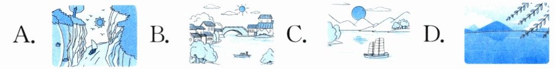 4. 从诗句“两岸青山相对出,孤帆一片日边来”中,你看到的画面是( )