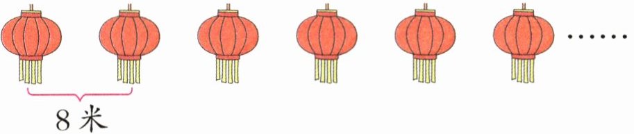 4. (2025·宁波鄞州区期末改编)如下图,相邻两个红灯笼之间的距离相等。第1个到最后1个灯笼之间的距离是64米,一共有(