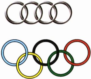 4. 右图分别为某品牌汽车标志和奥林匹克五环标志。张大伯做了20个同样大的圆环,如果做成该品牌汽车标志,可以做(