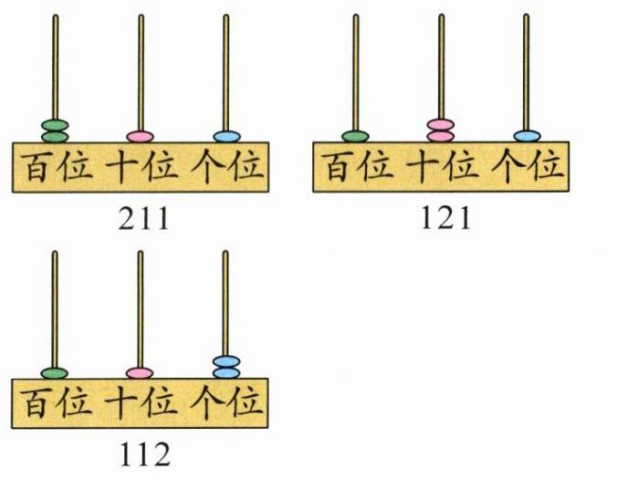 四 用4个珠在计数器上表示一个三位数,且每个数位上至少有1个珠。这个三位数可能是多少?(先画一画,再写一写)(共9分)
