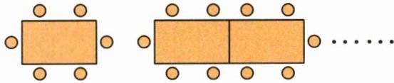 4. 新趋势 推导探究 如图,图书室有一些桌子,1张桌子可以坐6人,2张桌子可以坐10人,照这样摆放,3张桌子可以坐(