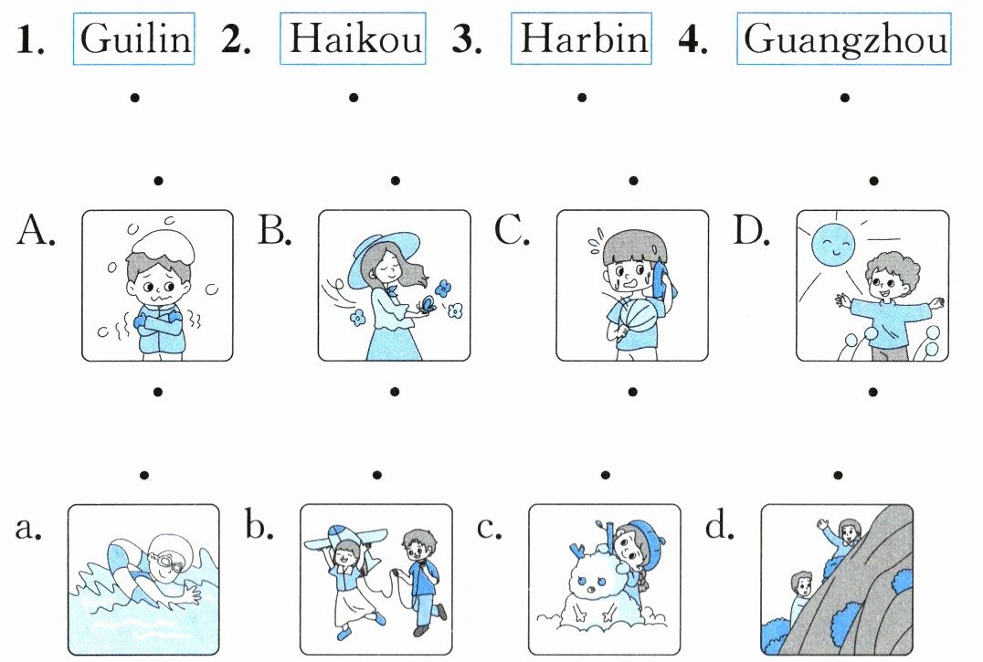 二 听两遍录音,将下列相关联的图片连线。(8分)
