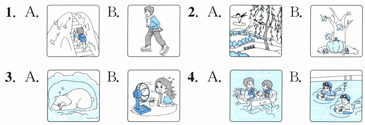 一 听两遍录音,圈出与所听内容相符的图片。(4分)