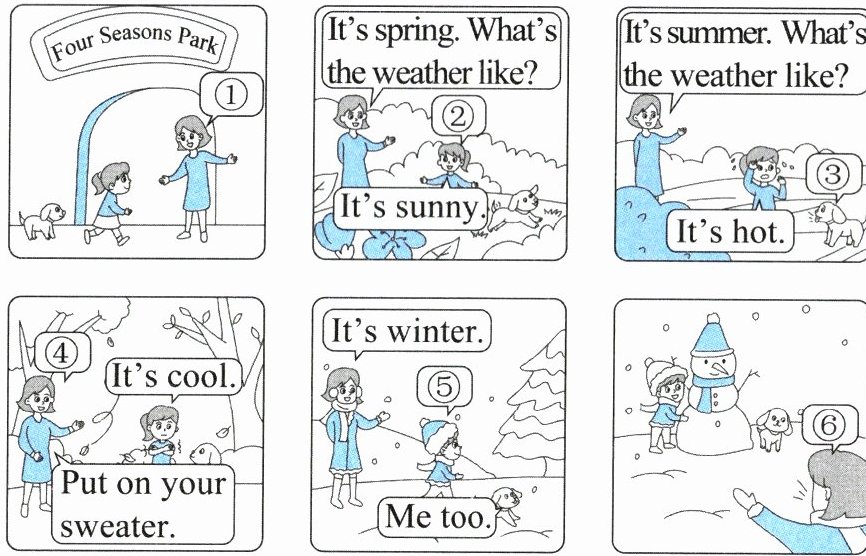 四从方框中选择合适的句子补全绘本中角色的对话。(9分)