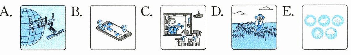 7:00 It's time to get up. Want to know the weather today? We see changes in clouds, oceans(海洋), lands and ice. 1. ________