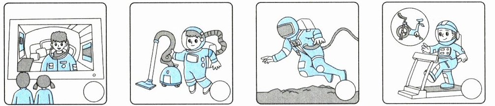 We do sports every day in the space station. We can run and ride bikes. Sports help us keep strong(强壮的) and healthy. ③